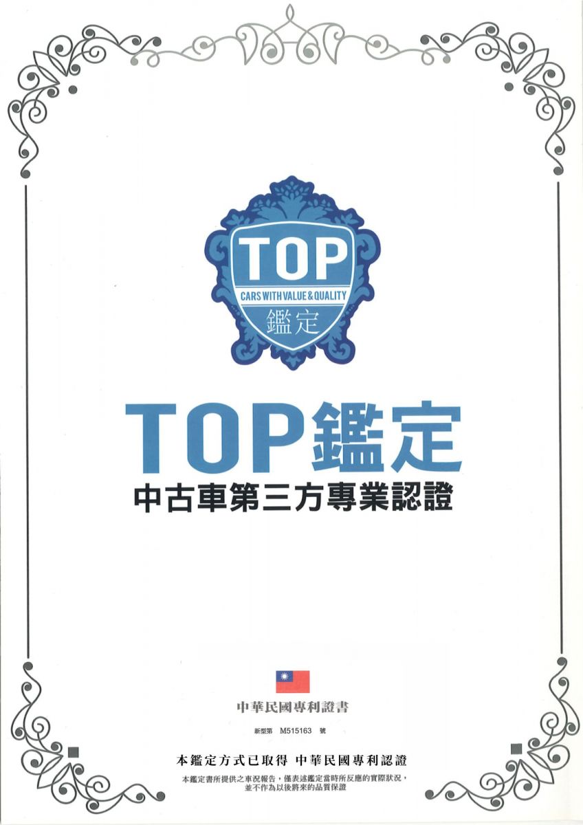全場車輛皆經TOP鑑定認證-全台唯一通過中華民國鑑定專利之鑑定方式