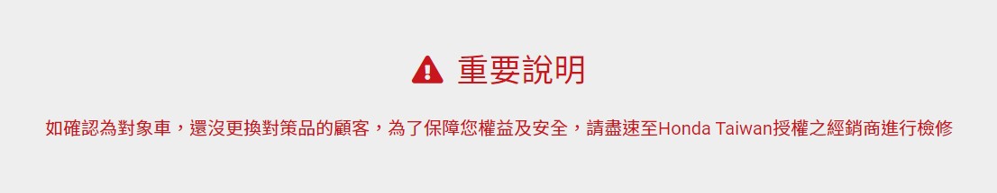 Honda Taiwan SRS安全輔助氣囊重要通知