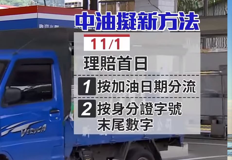先前理賠時間落在早上8點到下午5點上班時間,加上退款是儲值在捷利卡,引發民眾抱怨,而現在為了避免11月1號理賠首日加油站被擠爆,初步規劃兩方案,一是按照加油日期分流,或是按照身分證字號末尾數字。