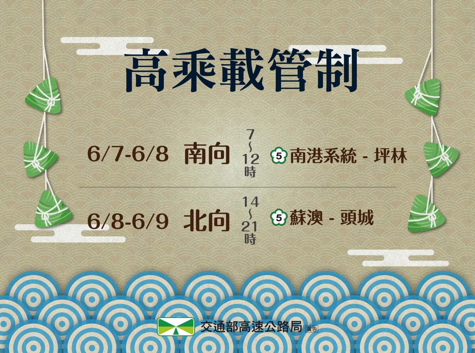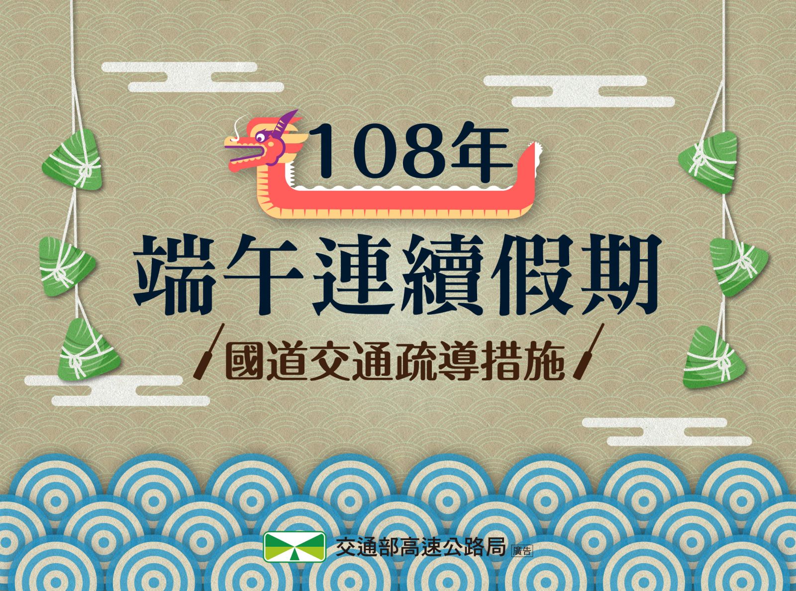 今(108)年端午節連假為108年6月7日(週五)至6月9日(週日)共3天,為維持高速公路行車合理服務水準,高速公路局(以下簡稱高公局)檢視歷年端午節連續假期交通狀況,透過大數據分析國道易壅塞時段路段,研擬相關疏導作為,同時考量假期間天候之應變、國、高中各級考試時程、國道沿線各縣市政府舉辦之龍舟賽事及國道沿線遊樂區舉辦之優惠活動,審慎研擬應變計畫及規劃交通疏導措施。
