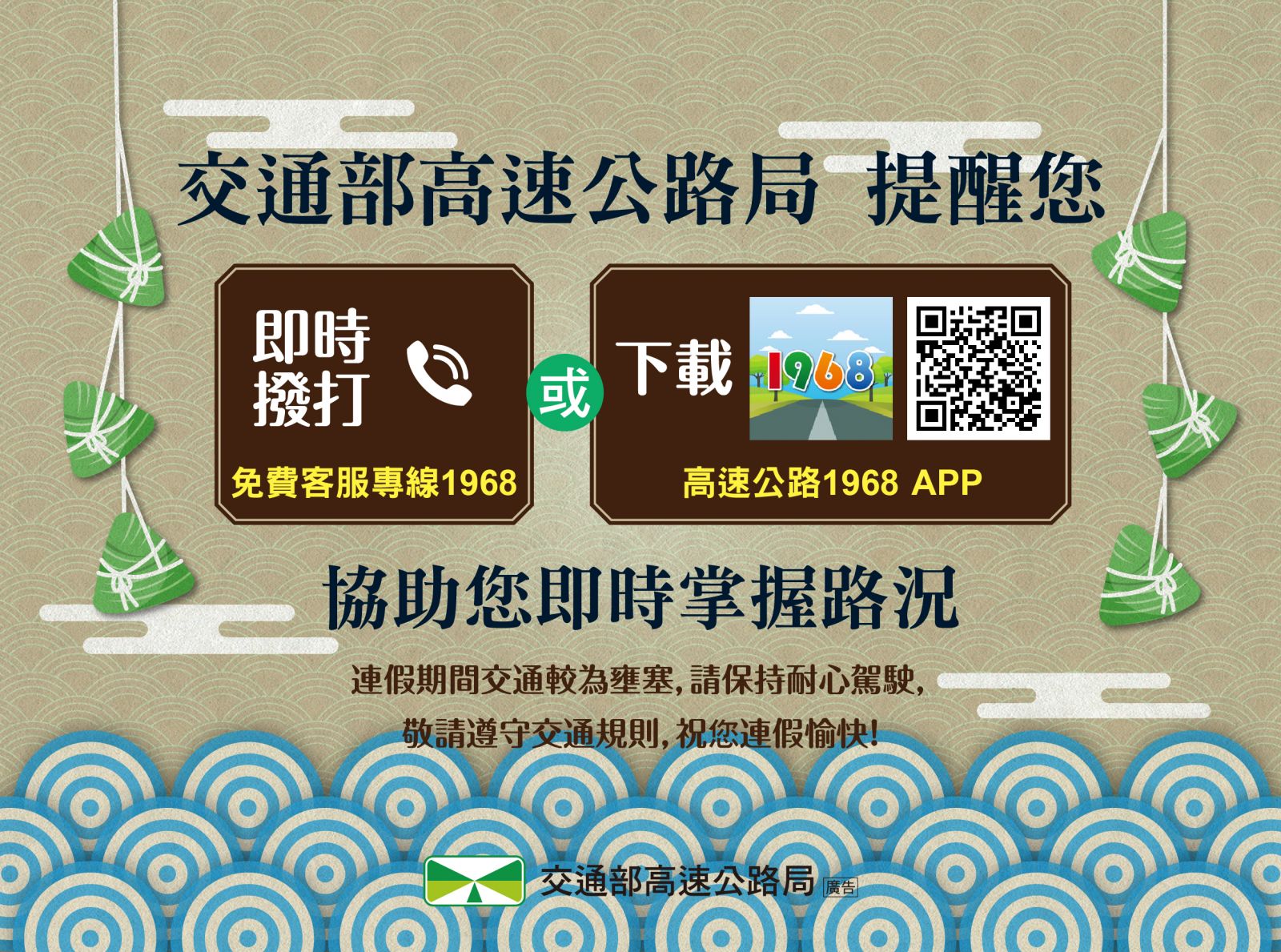 連續假期間,國道部分路段於尖峰時段之交通量遠大於可服務通過容量,故發生壅塞在所難免。用路人如要開車出門,請務必做好車況檢查及蒐集瞭解各項交通疏導措施,配合地圖妥善規劃行程,出門前先下載「高速公路1968」App或上高公局即時路況資訊網站查詢路況,行駛途中可透過廣播、路上電子資訊看板、請同車親友使用「高速公路1968」App或撥打「1968」客服專線,掌握即時路況,彈性調整行車路線,避開壅塞路段,做個聰明的用路人。