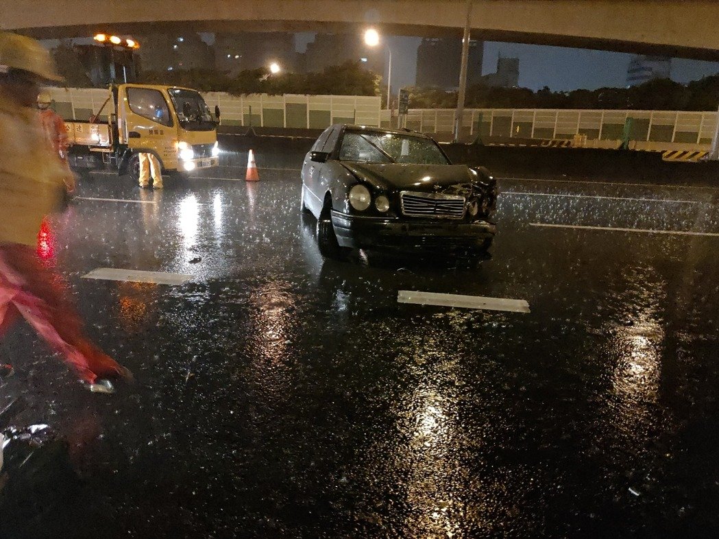 國道警察指出,郭開車從濱江交流道上國道1號要到五股,今天凌晨1時許,行經國道1號南向25.1公里重慶路段時,原本行駛在外側車道,疑似因雨天車輛打滑,先失控衝向內側車道,再彈到外側車道,最後停在中線車道。