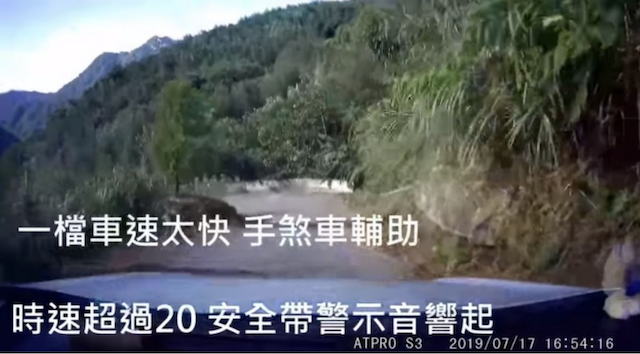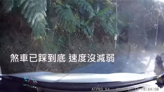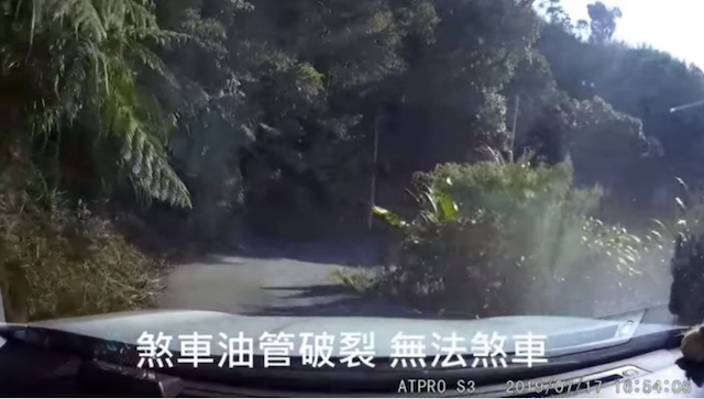 在網友 po 出的影片中可以看見,他首先踩剎車放手剎車、打入 D 檔,之後發現剎車油管破裂無法剎車,剎車已踩到底速度卻沒減弱,讓他驚呼「差點就下山了」,手動降檔後,由於一檔車速太快,他便用手剎車輔助,過程中輕拉手剎車,最後安全下山,但也讓他嚇到說自己「褲底一包」。