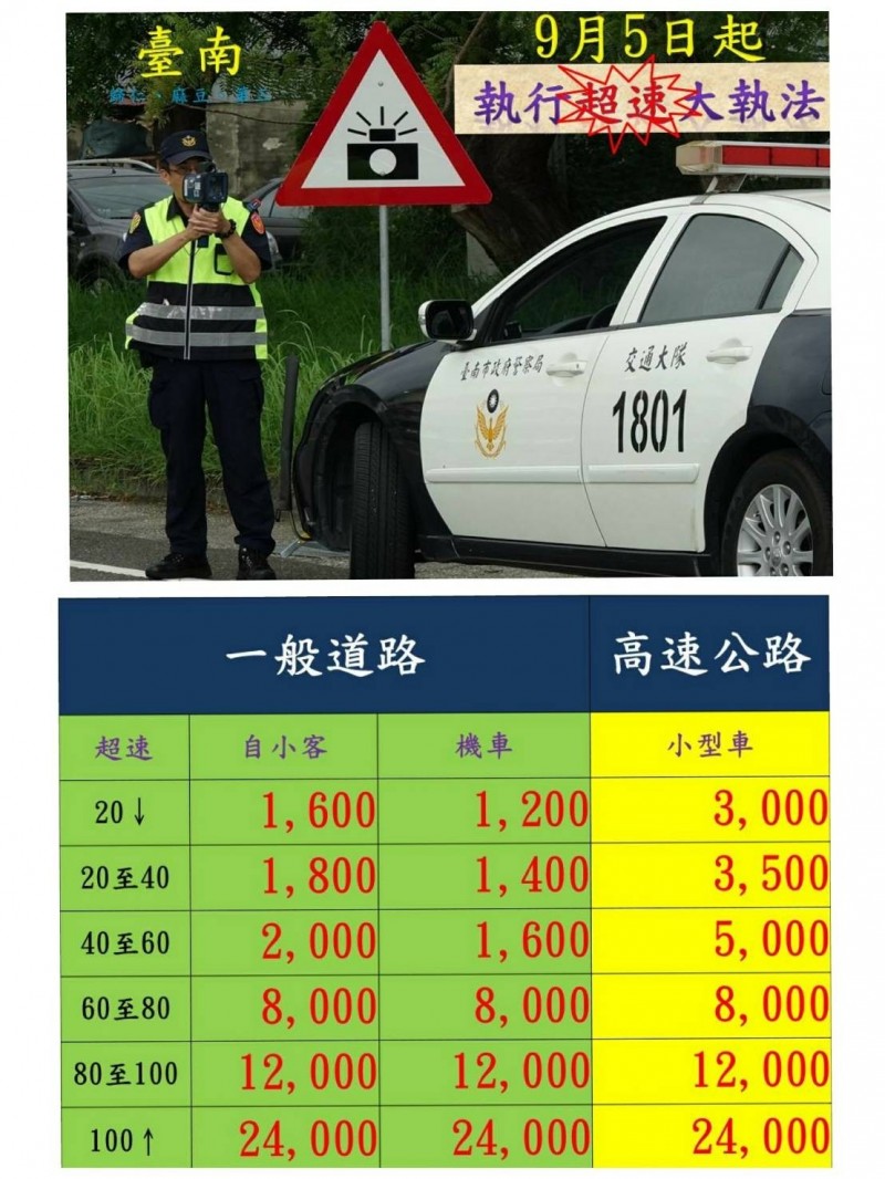 南市警方將從九月五日起展開交通大執法第二彈─取締駕駛超速專案。(記者王俊忠翻攝)