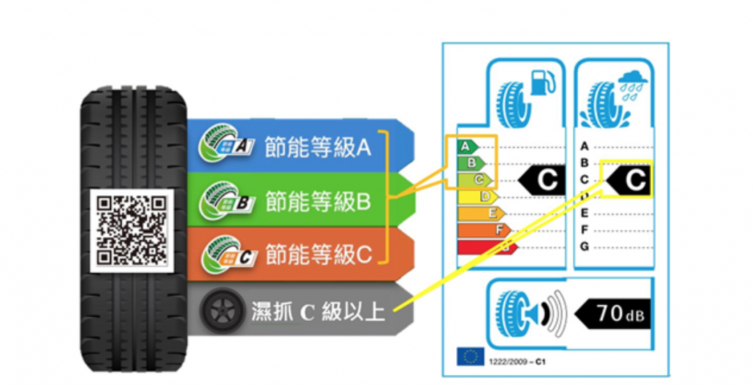 除了符合節能等級,也必須通過符合歐盟濕地抓地力指數≥1.2,濕地抓地力 C 級以上要求。