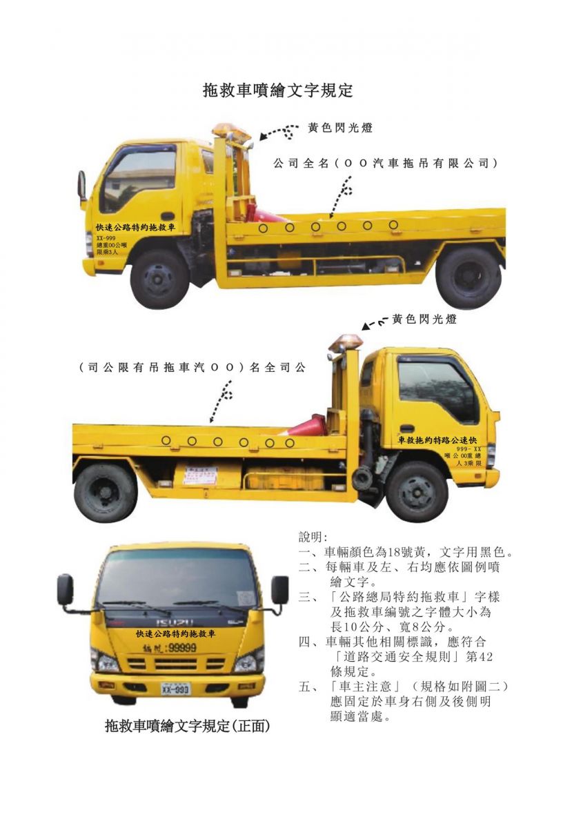 公路總局快速公路特約拖救車新規定,109年元旦起實施。