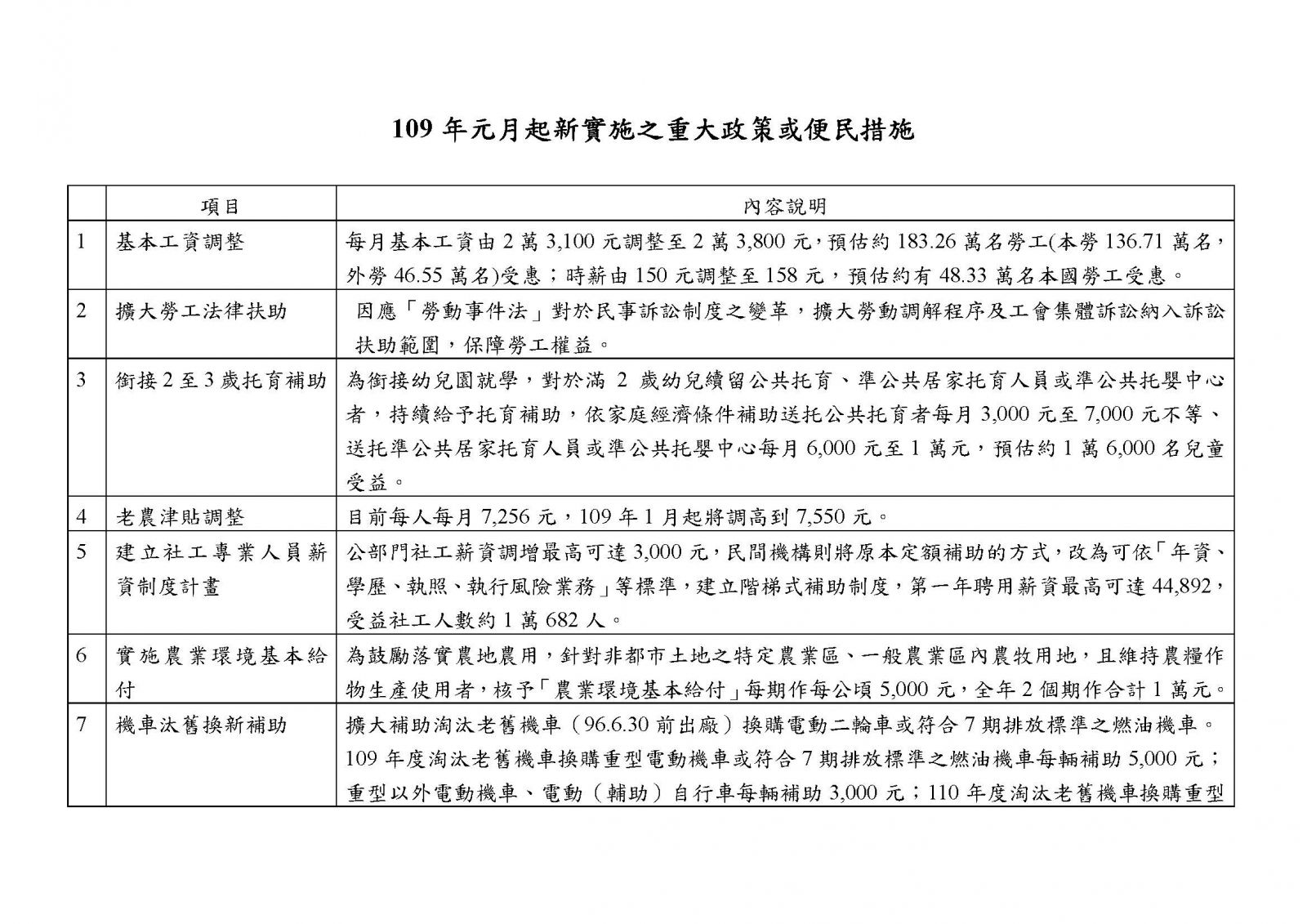 ▲2020年元月起新實施之重大政策或便民措施。(資料來源:行政院)