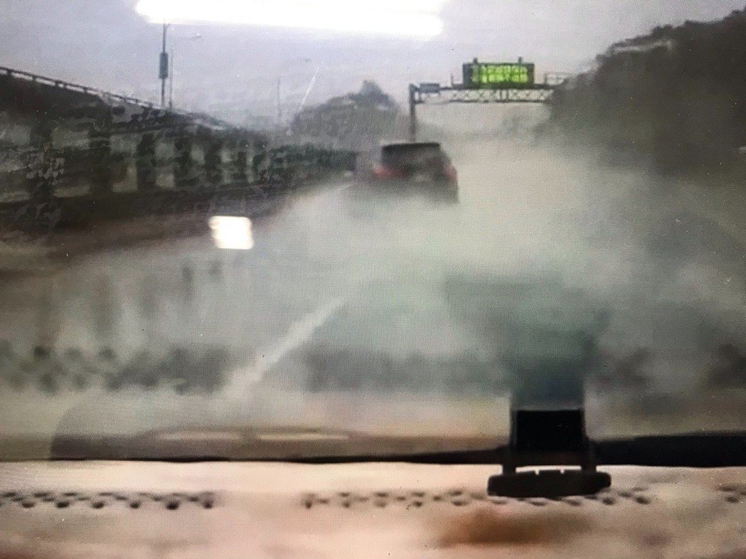 李姓男子清晨行經在中山高五堵路段,目睹前車打滑驚險畫面。圖/李姓讀者提供