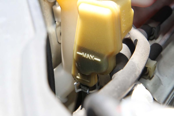 此油類的檢查只需在引擎發動時,觀察動力方向機油壺的油量是否足夠,便可完成檢查,不足時只需添加動力方向機油或自排油即可。
