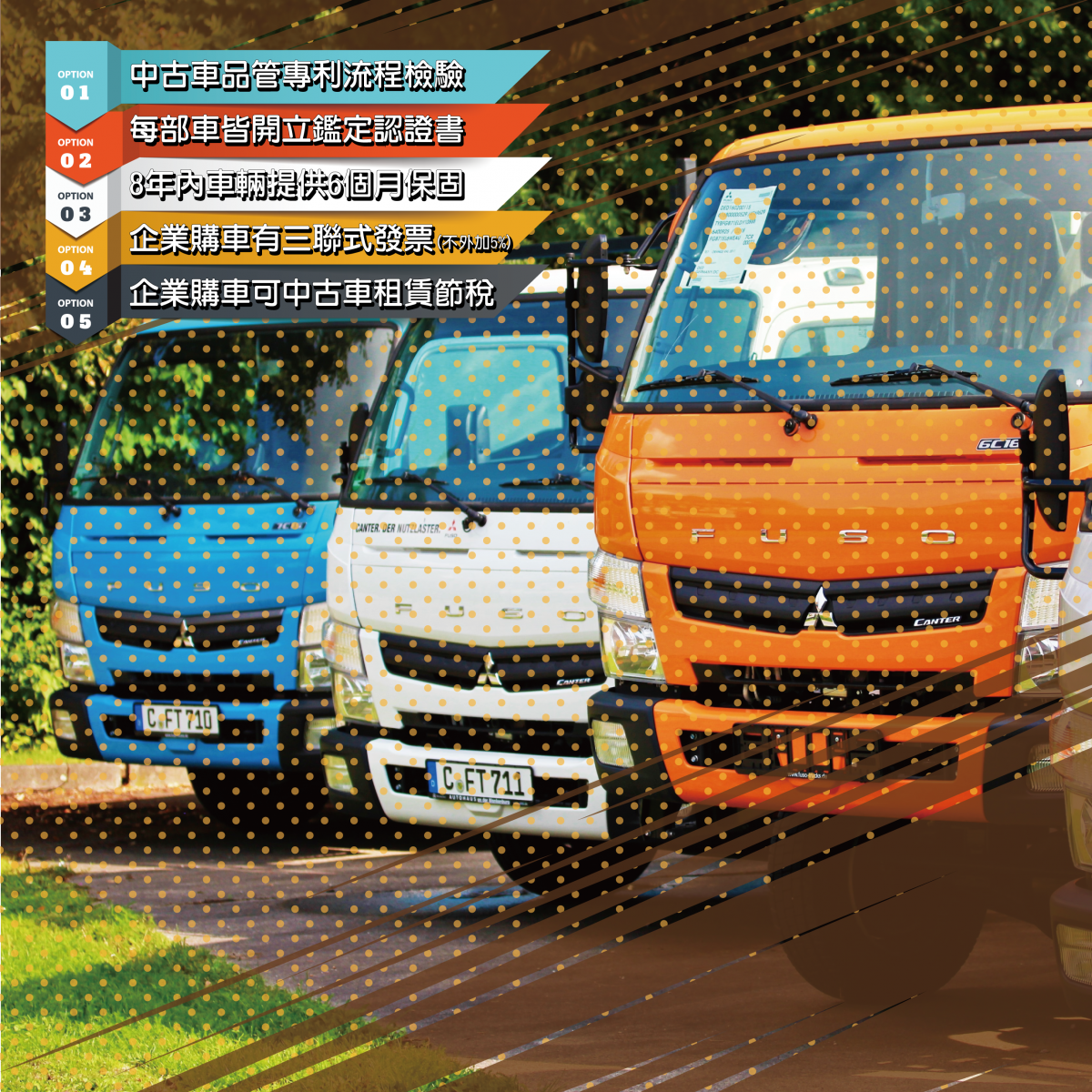 我們提供保證(固)書,在上架之前,就會把車輛依照專利品管流程整理到幾乎跟新車一樣,讓您只要來到現場看車,一定會被整理後的車況深深吸引住,希望即刻就能將它納入成為您的工作夥伴。