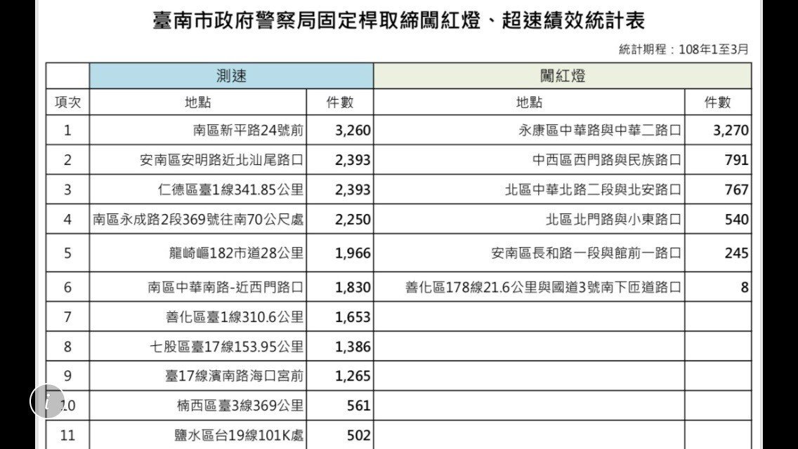 注意!台南市1至3月十大「吸金」測速照相 一次告訴你